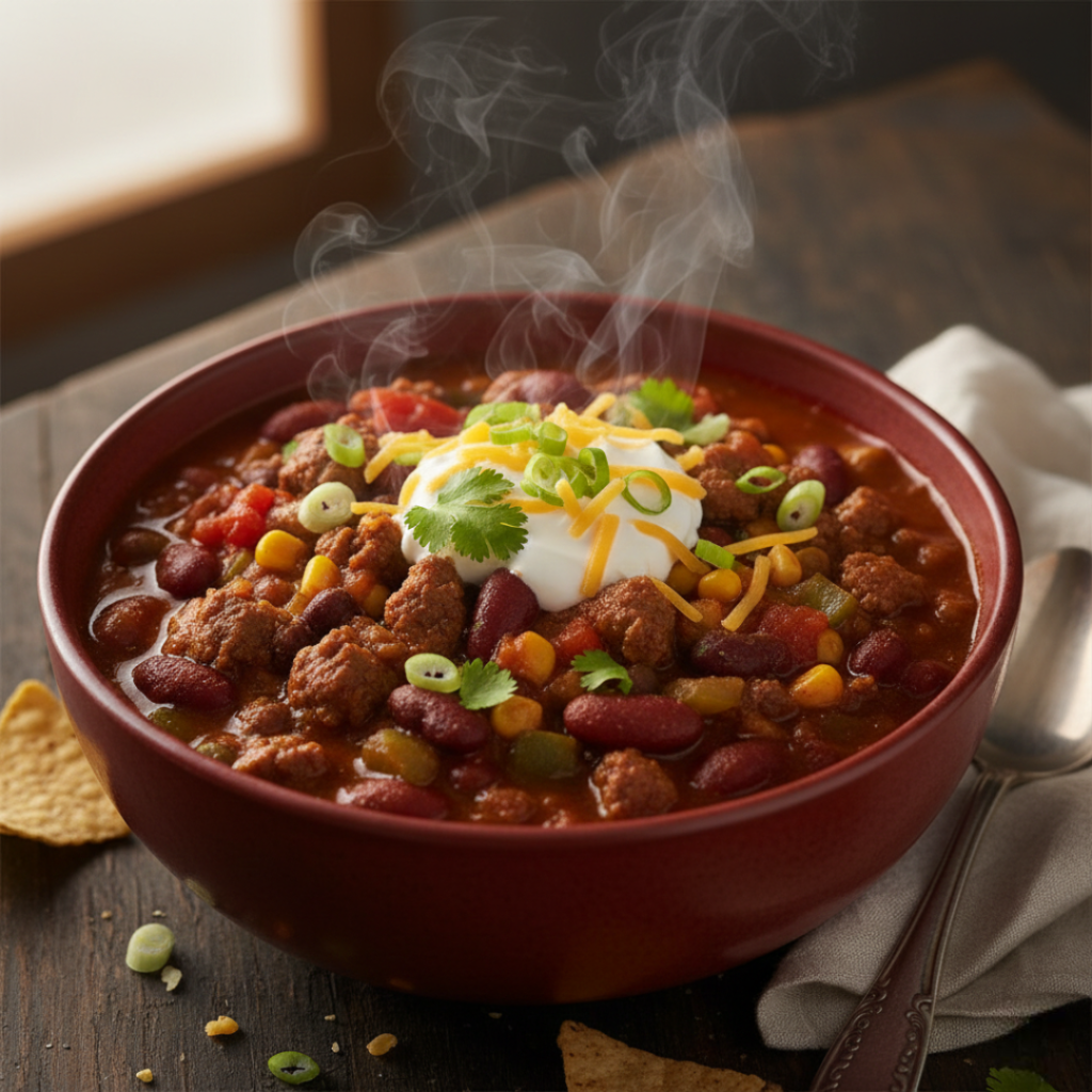 - Taste and adjust seasonings. Serve hot with toppings like shredded cheddar, sour cream, green onions, or cornbread on the side—classic American style.