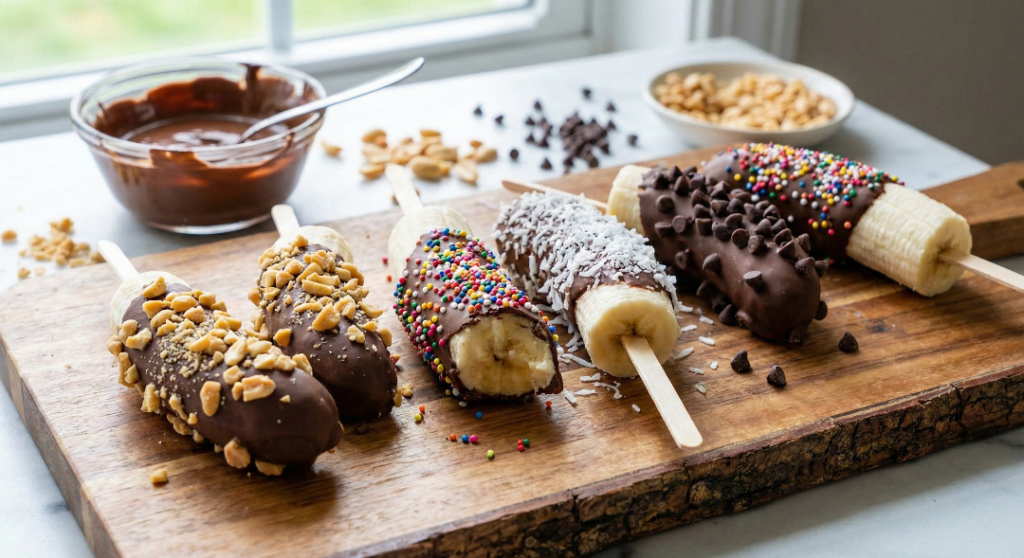 Inspired by classic frozen banana snacks popular on healthy parenting blogs and simple no-sugar dessert ideas from desi home kitchens. Adapted for everyday affordability using local yogurt and seasonal bananas, with topping variations from family-friendly recipes shared online. Freshly created here for easy, nutritious fun.