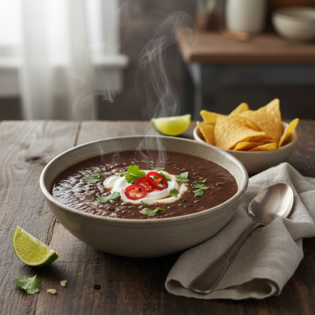 This comforting black bean soup is a budget-friendly, hearty meal full of protein and fiber from simple pantry staples. Made with dried or canned black beans, vegetables, and warm spices, it simmers into a thick, flavorful bowl that’s perfect for cooler evenings. Serve with rice or flatbread for a complete, satisfying dinner that feeds a family affordably.